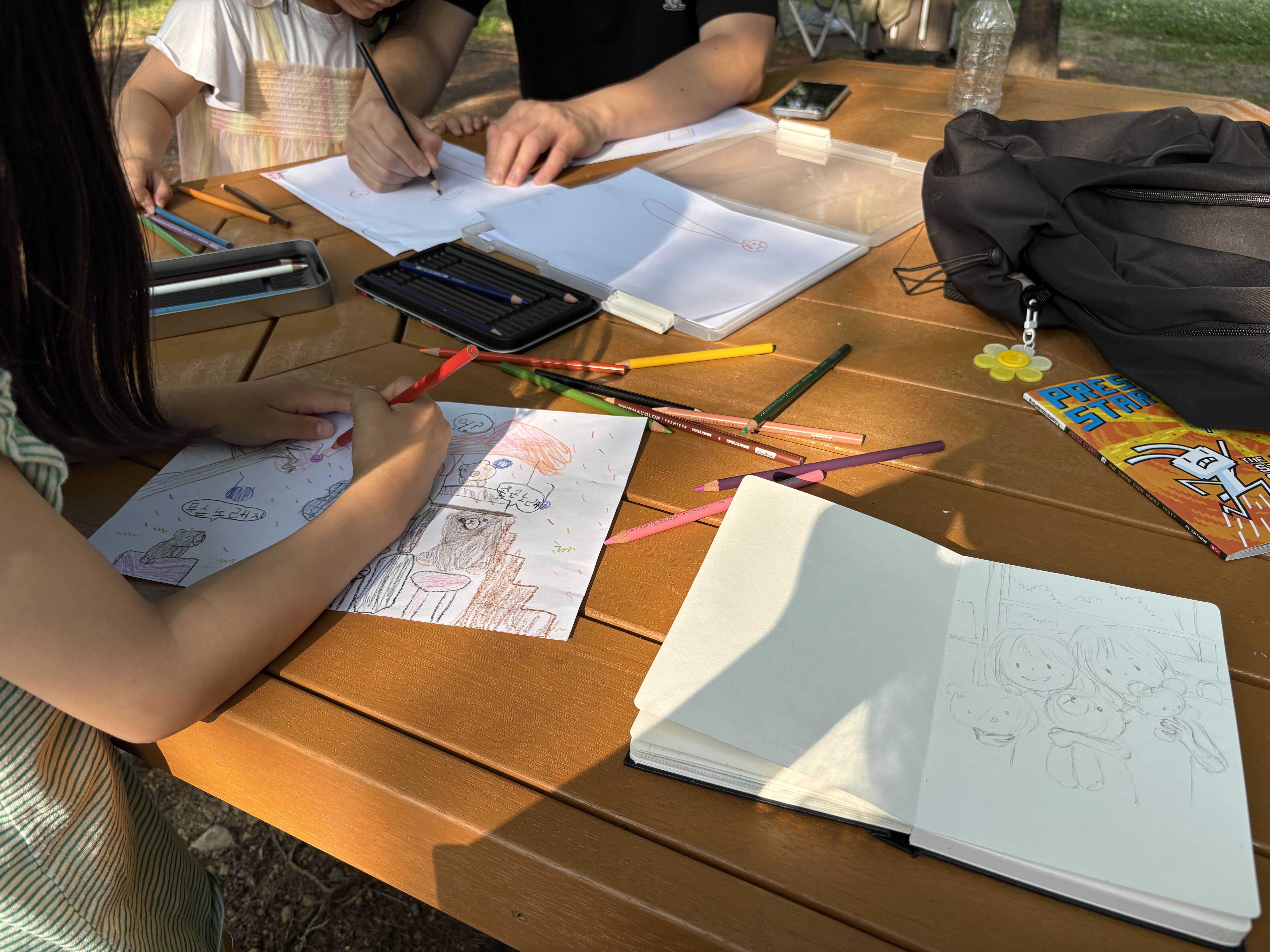 μ‘κΈ μ‘κΈ λ§·ν λ λ°©μΈμ κ·Έλμμ μνλ©° ν¨κ» λμ΄ μμ κ·Έλ¦Όμ 그리λλ°, λ무λ νλ§ λλ μκ°μ΄μμ΄μ~\